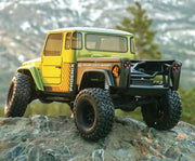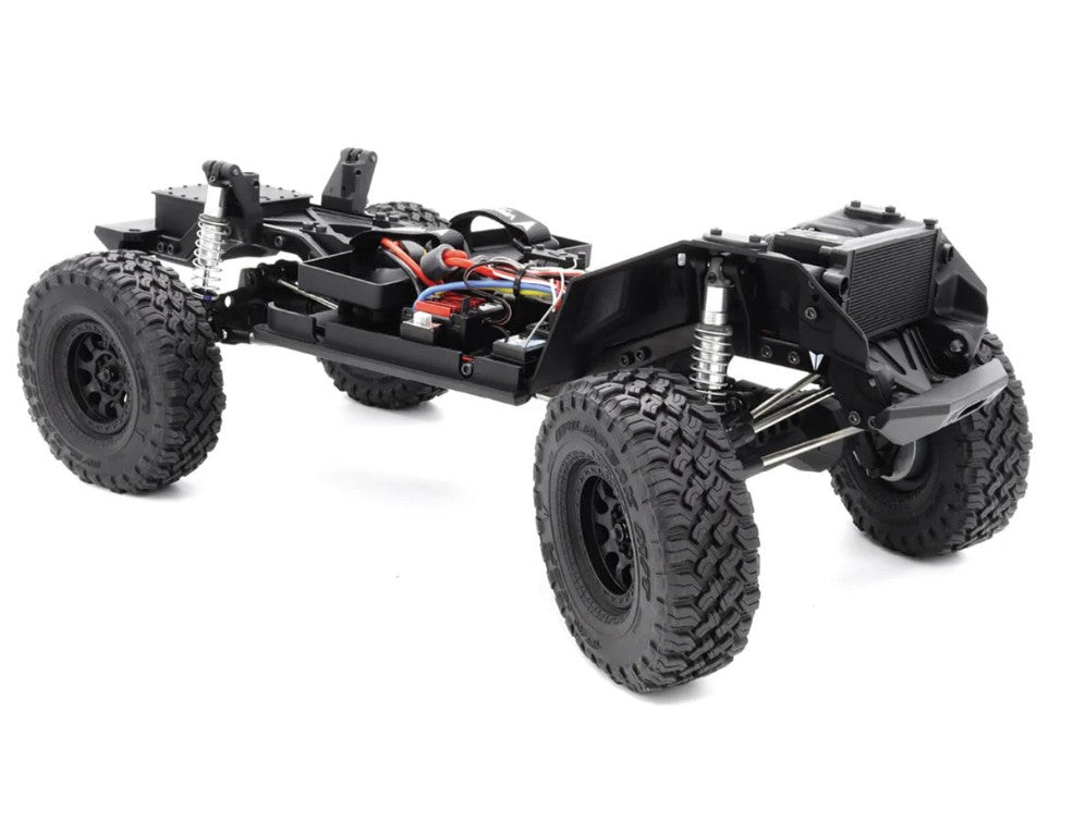 Le Phoenix est doté d'une carrosserie prépeinte audacieuse avec une cage arrière VRD1, une cabine et des côtés de caisse peints, ainsi que d'une conception en trois parties avec des détails à l'échelle, comme une calandre moulée, des boîtiers de phares et de feux arrière, et des clips de carrosserie dissimulés. Un système de montage articulé avec axe de pivot avant à démontage rapide simplifie et nettoie l'accès à la carrosserie. Les protections anti-roche moulées et les pare-chocs à garde au sol élevée sont non seulement esthétiques, mais améliorent également les angles d'approche et de départ pour les déplacements intensifs. Sous le capot, les pneus Falken Wildpeak M/T 1.9 offrent une excellente adhérence sur divers terrains, tandis que les jantes Incision KMC KM237 Hex Beadlock offrent un réalisme à l'échelle et un montage sécurisé pour des performances constantes.