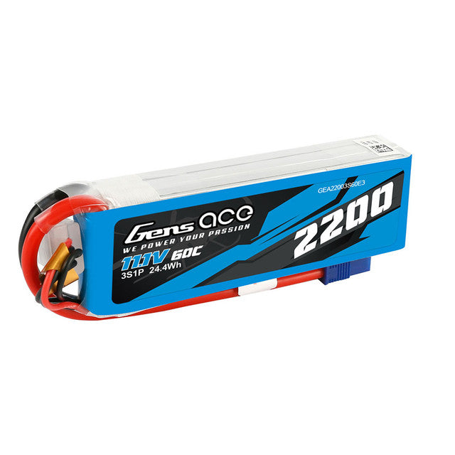 GEA22003S60E3 Gens Ace 2200mAh 11.1V 60C 3S1P batterie Lipo avec prise EC3